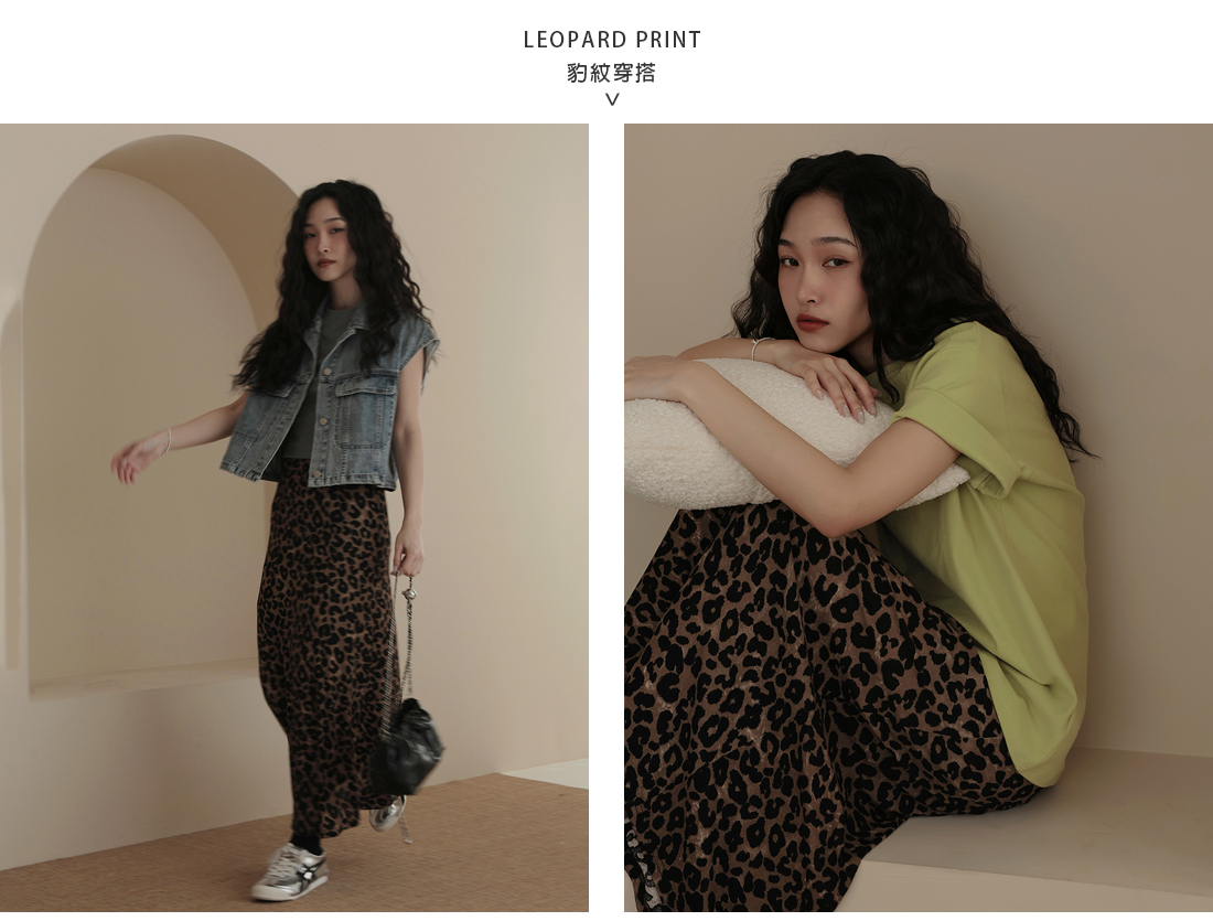 超顯瘦! 垂感彈性紗質包臀豹紋裙