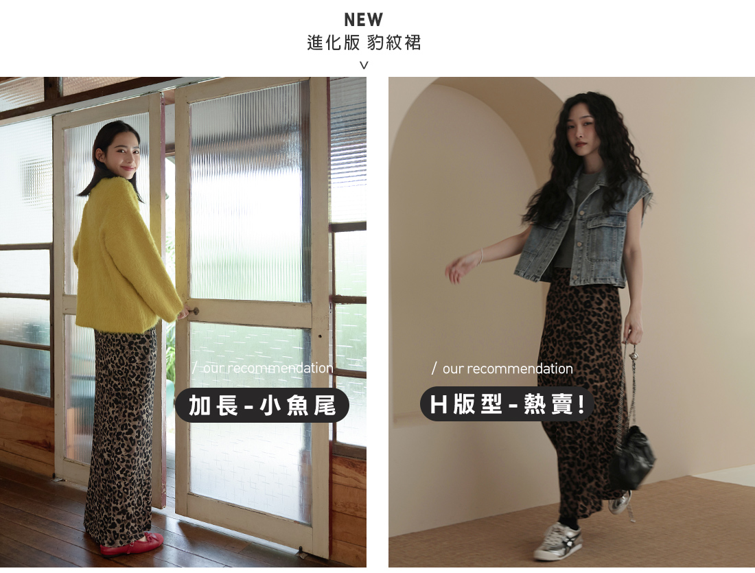 超顯瘦! 垂感彈性紗質包臀豹紋裙
