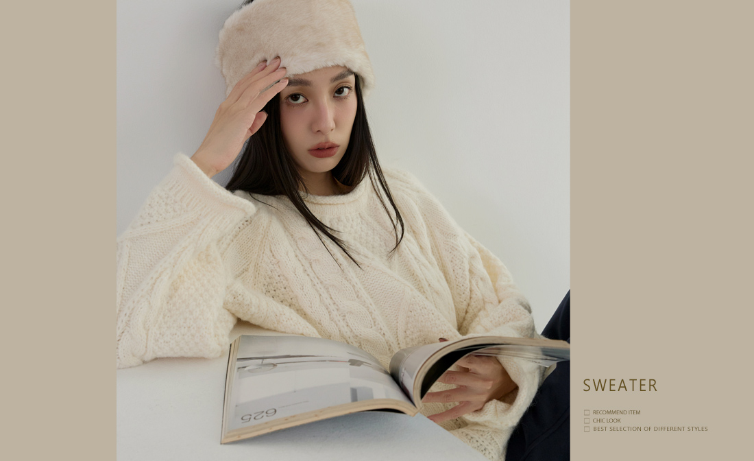 擁抱鬆弛感! 厚厚軟軟捲邊圓領毛衣