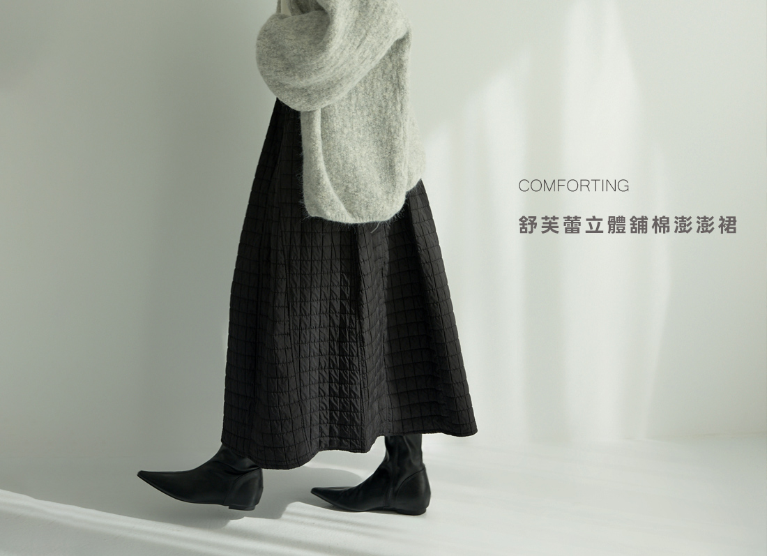 皺褶垂感重工羊毛長裙