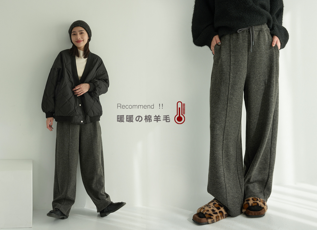 顯瘦立體長腿保暖休閒內刷絨寬褲(保暖褲)