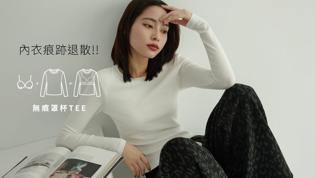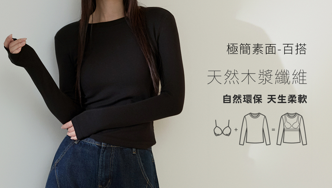 發熱打底T! 合身小圓領輕暖日常罩杯T恤 Bra Top 發熱衣
